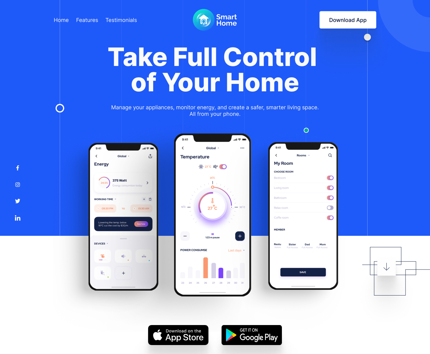 My debut web project: a modern smart-home dashboard concept. Built with HTML and Tailwind CSS, focusing on sleek aesthetics and intuitive desktop navigation.